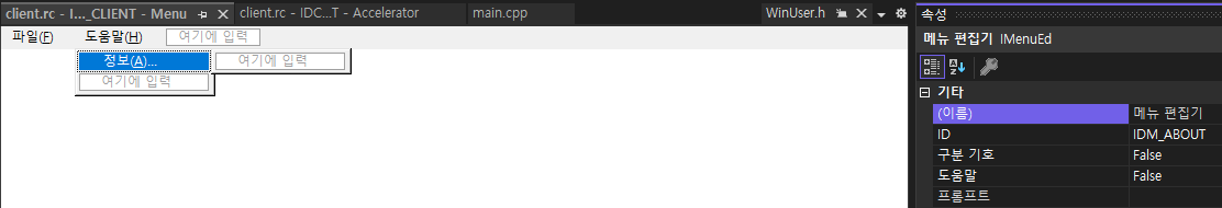 IDM_ABOUT 이라는 ID 는 리소스 뷰의 Menu > IDC_CLIENT 에 있는데